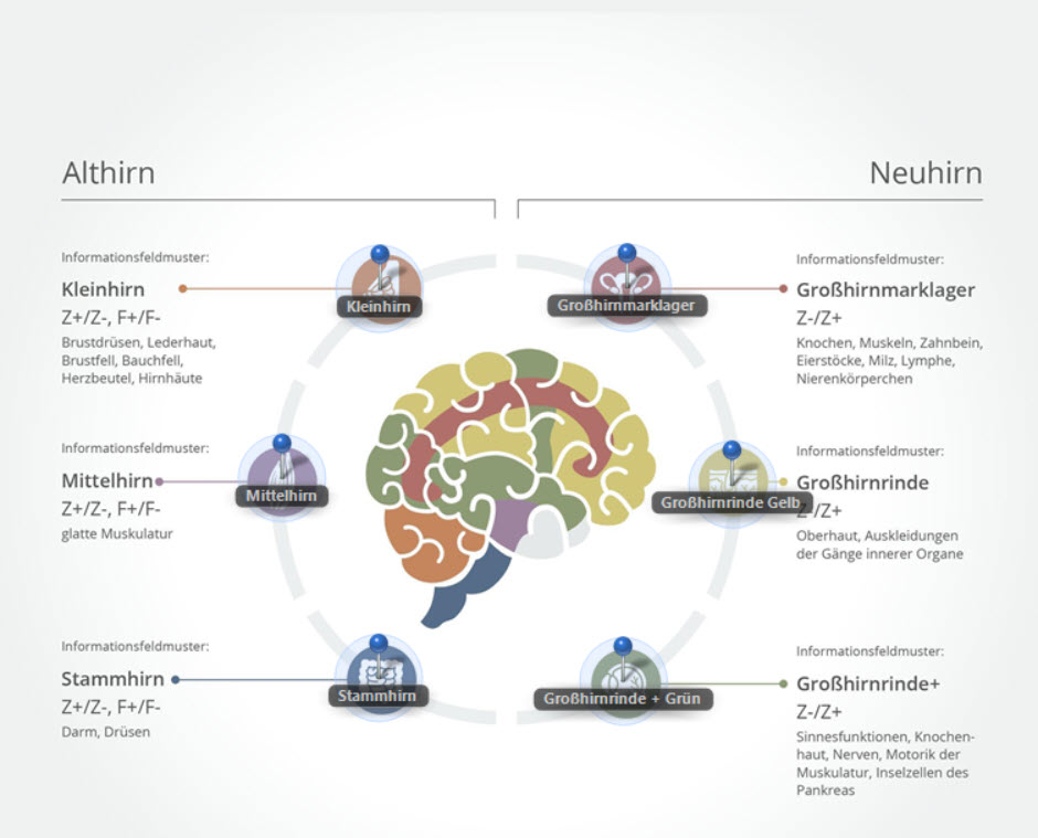 Ansonsten einfach "Analyse starten" mit der Maus aktivieren u. die Analyse läuft automatisch durch die Gehirnzonen durch u. das Ergebnis sehen Sie sofort oben rechts in den Farben "Rot + Blau" und mit den jeweiligen % als Relevanzen.